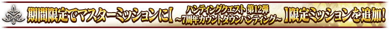 ■期間限定でマスターミッションに【ハンティングクエスト 第12弾 ~7周年カウントダウンハンティング~】限定ミッションを追加!