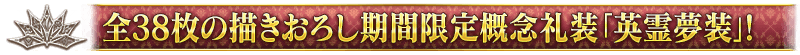 「英霊夢装」は、「各異聞帯の衣装」をテーマにサーヴァントたちを描きおろした全38枚の期間限定概念礼装です。