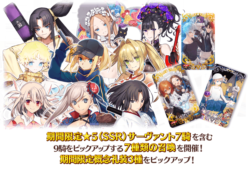 「Fate/Grand Order」7周年を記念して、期間限定サーヴァント9騎をピックアップする7種類の召喚を開催いたします!