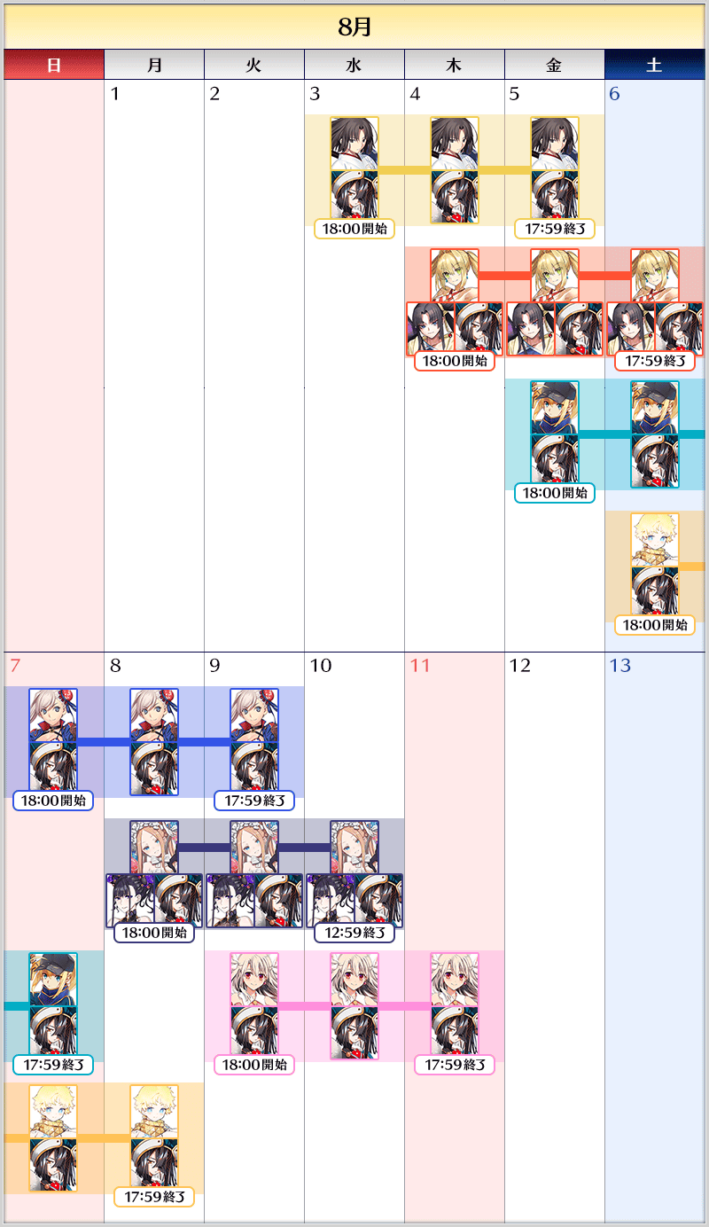 ◆「7周年記念限定サーヴァント日替りピックアップ召喚」スケジュール◆