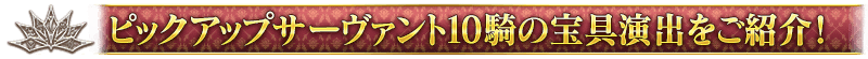 本召喚にてピックアップされている、サーヴァント10騎の宝具演出を紹介いたします!