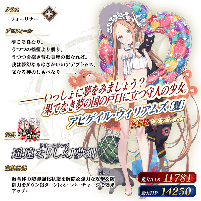 ※上記の「★5(SSR)アビゲイル・ウィリアムズ〔夏〕」のイラストは霊基再臨第3段階のものです。
