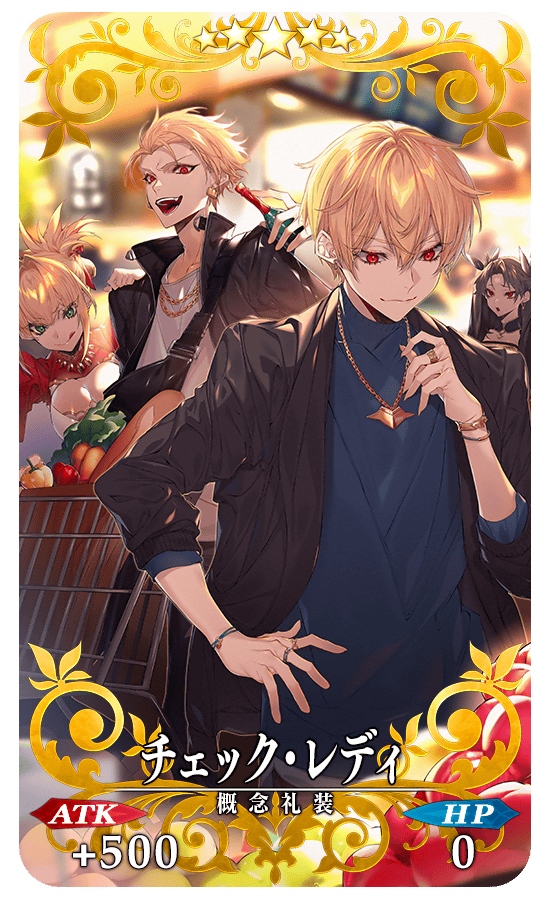 試合景品抽選で入手できるイベント限定概念礼装「★5(SSR)チェック・レディ」を装備することで、期間限定イベント「バトル・イン・ニューヨーク 2022 ~スペース・オデュッセウス対ニコラ・テスラ~」における自身の攻撃の威力がアップします。