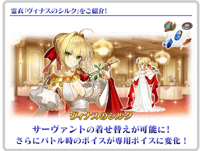 ※「★4(SR)ネロ・クラウディウス(セイバー)」の霊衣は、外見とともに一部ボイスが変化します。
