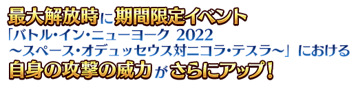 期間限定イベント「バトル・イン・ニューヨーク 2022 ~スペース・オデュッセウス対ニコラ・テスラ~」のエピローグをクリアしたマスターを対象とした、高難易度の「チャレンジクエスト」が開放されます。