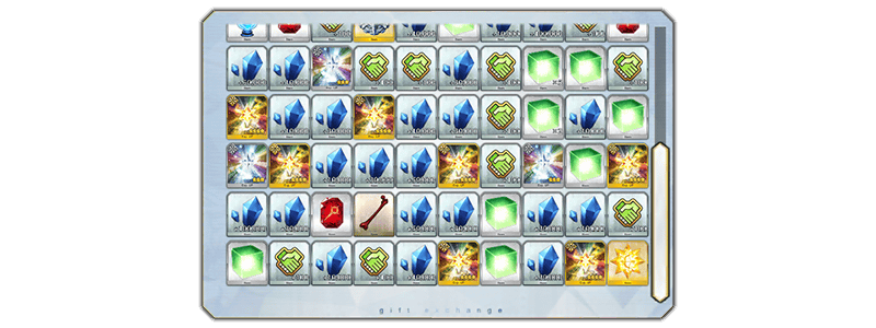 イベントアイテムは、ターミナル画面右上の「イベント報酬」ボタンをタッチすると表示される「イベントアイテム交換」画面より、以下のアイテムと交換できます。