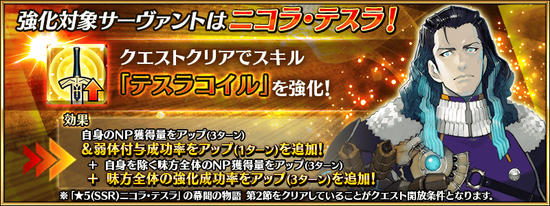 また、「★5(SSR)ニコラ・テスラ」の場合は、「★5(SSR)ニコラ・テスラ」の幕間の物語 第2節をクリアしている必要があります。