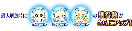 本イベントの期間中、上記以外のすべてのサーヴァントはクラスに応じて「元気なコン」「陽気なコン」「健気なコン」いずれかの獲得数がアップします。