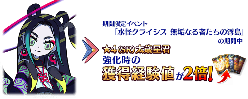 本イベントの期間中は、「★4(SR)太歳星君」を強化した際の獲得経験値が2倍になります。