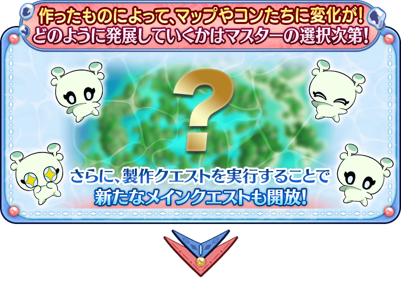 製作クエストでは、救出したコンたちの力を借りて拠点を発展させることができるようになります。より多くのコンたちを救出し、拠点を発展させて奪われた島の領域を取り戻していきましょう!