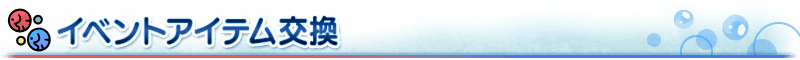 イベントアイテムは、ターミナル画面右上の「イベント報酬」ボタンをタッチすると表示される「イベントアイテム交換」画面より、以下のアイテムと交換できます。