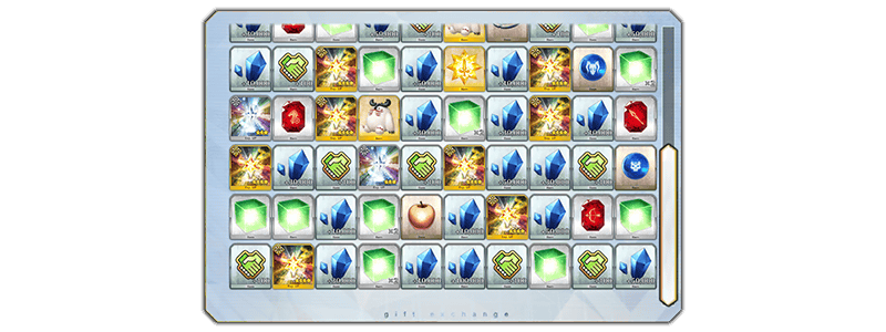 イベントアイテムは、ターミナル画面右上の「イベント報酬」ボタンをタッチすると表示される「イベントアイテム交換」画面より、以下のアイテムと交換できます。