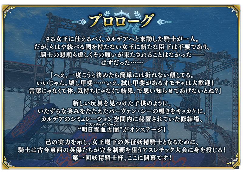 ※第2部 第6章「Lostbelt No.6 妖精円卓領域 アヴァロン・ル・フェ 星の生まれる刻」を未クリアの場合、本イベントのメインクエストはプレイすることができませんので、あらかじめご注意ください。