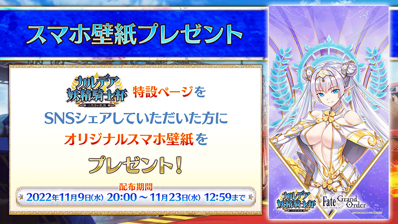 期間限定イベント「カルデア妖精騎士杯 ~二代目の凱旋~」の特設ページにて、スマートフォン向け壁紙のプレゼントを実施中!