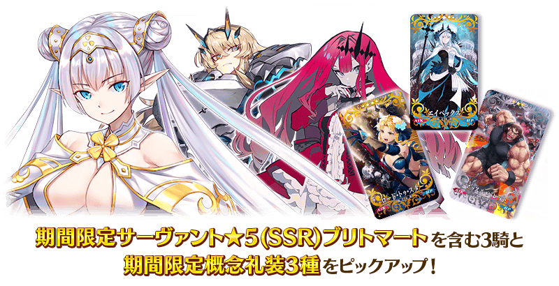 期間限定イベント「カルデア妖精騎士杯 ~二代目の凱旋~」の開催を記念して、新登場の期間限定サーヴァント「★5(SSR)ブリトマート」を含む3騎のサーヴァントと期間限定概念礼装3種をピックアップ!