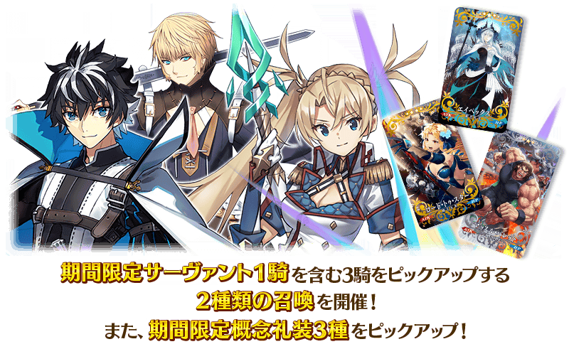 期間限定イベント「カルデア妖精騎士杯 ~二代目の凱旋~」に関連するサーヴァントの中から、期間限定サーヴァント「★5(SSR)シャルルマーニュ」を含む3騎のサーヴァントをピックアップする2種類の召喚を開催いたします!
