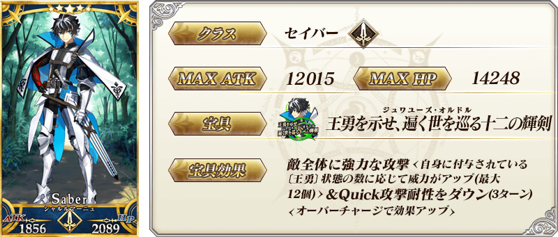 ※「★5(SSR)シャルルマーニュ」の『霊基解放クエスト』は、「★5(SSR)シャルルマーニュ」を霊基再臨第3段階にすることで開放されます。