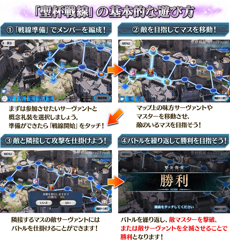 まずはこのクエストで聖杯戦線の基本的な遊び方を覚えましょう。