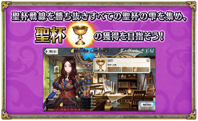勝利することで聖杯の雫を1つ入手でき、新たなストーリーが開放されていきます。聖杯の雫は7つ集めることで聖杯と交換可能になるので、すべての戦いを勝ち抜き、聖杯の獲得を目指しましょう!