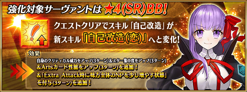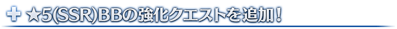 「★5(SSR)BB」が強化される特別なクエスト「サーヴァント強化クエスト」が、カルデアゲートに恒常的に追加されます。
