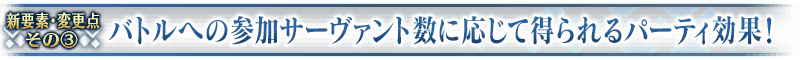 ※バトル開始後に戦闘不能などで参加サーヴァント数が減った場合でも、そのバトル中は得られるパーティ効果に変化はありません。(6/15 14:00内容修正)