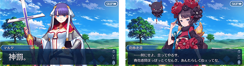 ※対象サーヴァントの「幕間の物語」を未所持の状態でクリアした場合でも、エクストラミッションの進行度にカウントされます。 ※対象サーヴァントの「幕間の物語」を、未クリアの状態で開催期間を過ぎた場合、対象サーヴァントの「幕間の物語」は未開放に戻り、通常の開放条件に切り替わります。 ※クエストクリア時の報酬内容に変化はございません。 ※すでに対象サーヴァントの幕間の物語をクリア済みの場合は、再度プレイすることはできません。