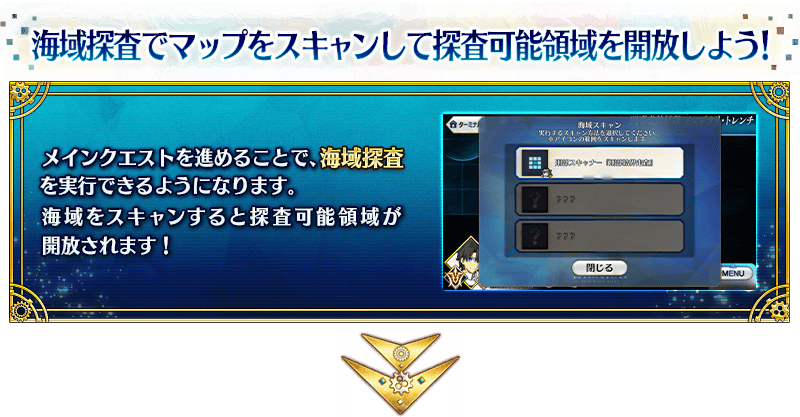 海域探査では、探査可能領域に対して海域スキャンを実行することで、隠されたスポットが開放されていきます。