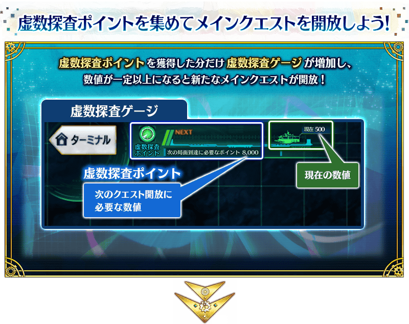 また、いずれかの海域探査クエストをクリアするか探査可能領域を開放することで虚数探査ポイントを獲得することが可能です。