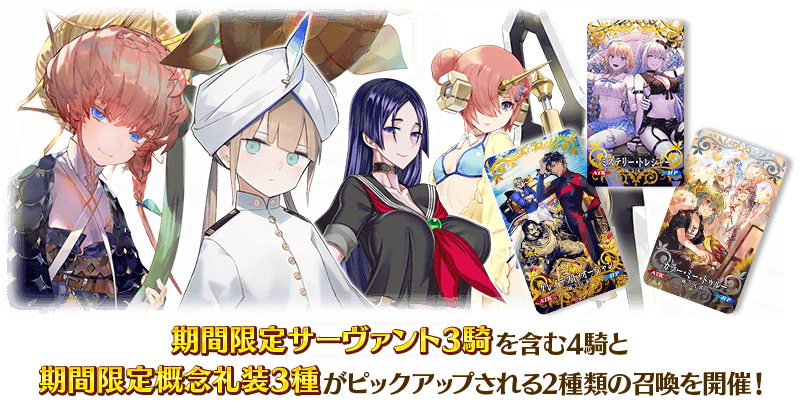 ピックアップ期間中は、ピックアップ対象のサーヴァントと概念礼装の出現確率がアップします!