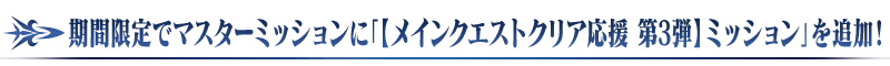 下記の期間中、「マスターミッション」の「限定」タブ内に期間限定で「【メインクエストクリア応援 第3弾】ミッション」が追加されます。