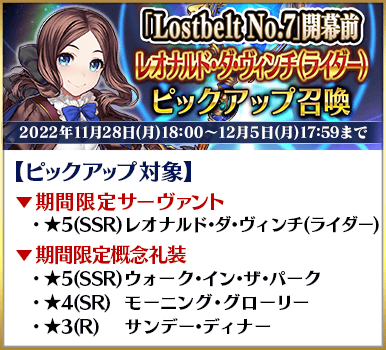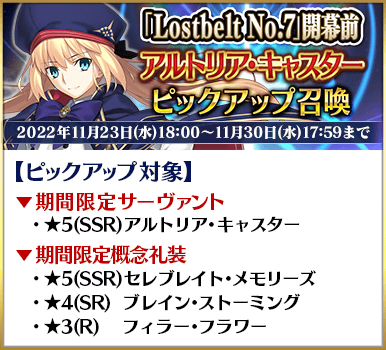 ◆『「Lostbelt No.7」開幕前メインクエストクリア応援ピックアップ召喚』期間◆