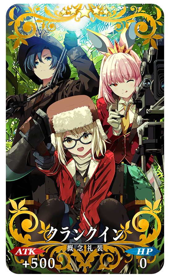 イベントアイテム交換で入手できるイベント限定概念礼装「★5(SSR)クランクイン」を装備すると、コラボレーションイベント「連続活劇神話 ミシシッピ・ミササイザーズ」における「発掘道具」(「ガツガツピッケル」「ドカドカハンマー」「ザクザクシャベル」)のドロップ獲得数がアップします!