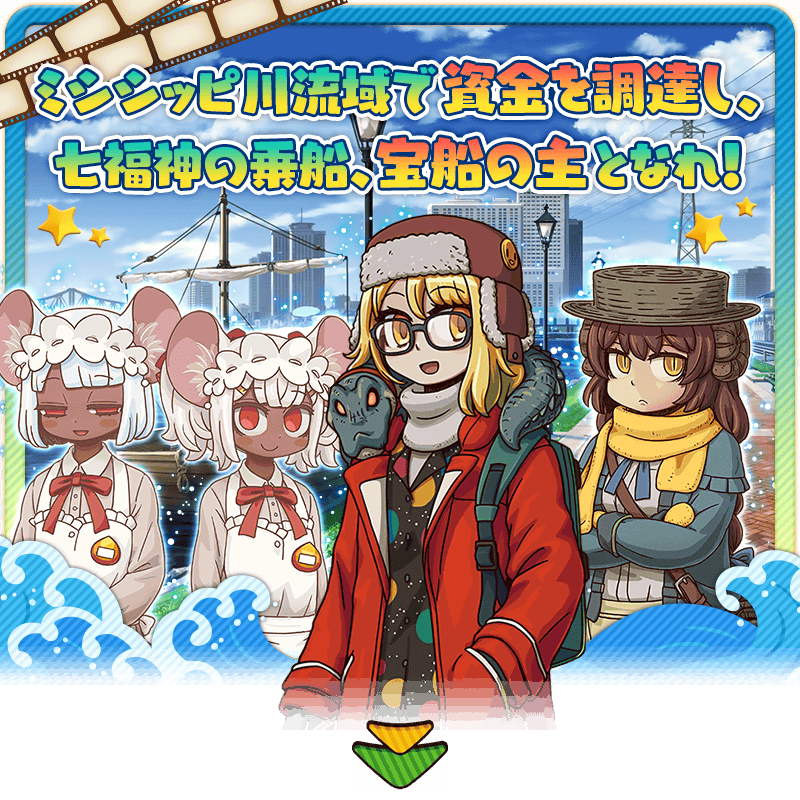 ※コラボレーションイベント「連続活劇神話 ミシシッピ・ミササイザーズ」の開催期間中、メンテナンスの実施を予定しております。メンテナンス中はゲームをプレイできませんので、あらかじめご了承ください。