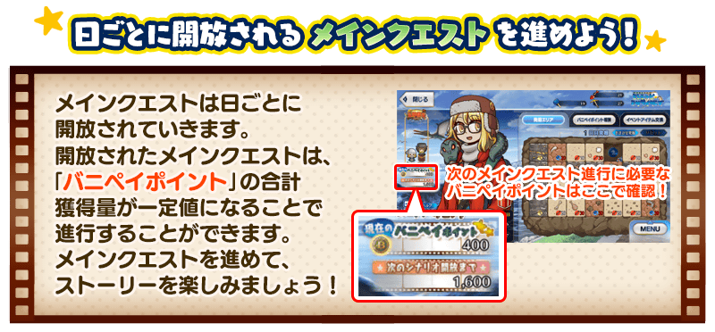 また、メインクエストの開放には、一定量のバニペイポイントも必要になります。