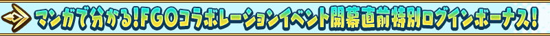 「マンガで分かる!Fate/Grand Order×Fate/Grand Orderコラボレーションイベント」の開幕を記念した特別ログインボーナスを実施いたします。