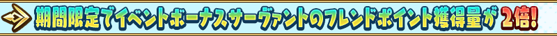 ※フレンドではないマスターもフレンドポイント獲得量2倍の対象となります。 ※ゲストサーヴァントの場合はフレンドポイント獲得量2倍の対象外となりますのでご注意ください。
