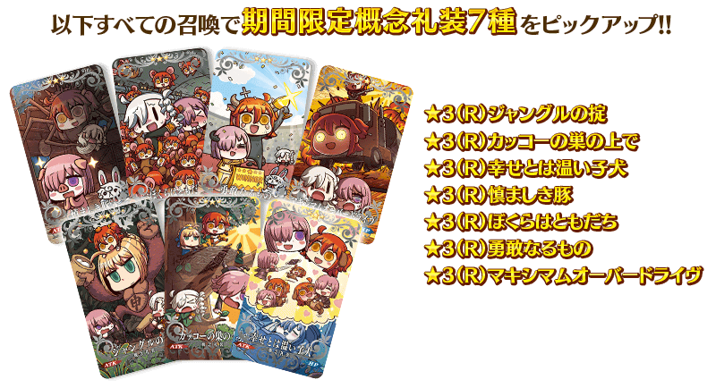 ※下記の期間限定サーヴァントは、ピックアップ対象となっている召喚からのみ排出されますので、ご注意ください。