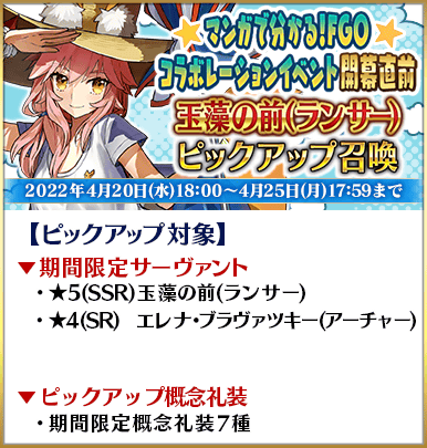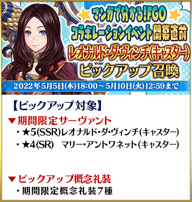 ◆「マンガで分かる!FGOコラボレーションイベント開幕直前ピックアップ召喚」期間◆
