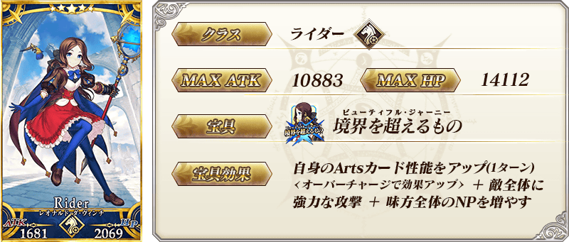 ※上記の「★5(SSR)レオナルド・ダ・ヴィンチ(キャスター)」のセイントグラフは霊基再臨第2段階のものです。