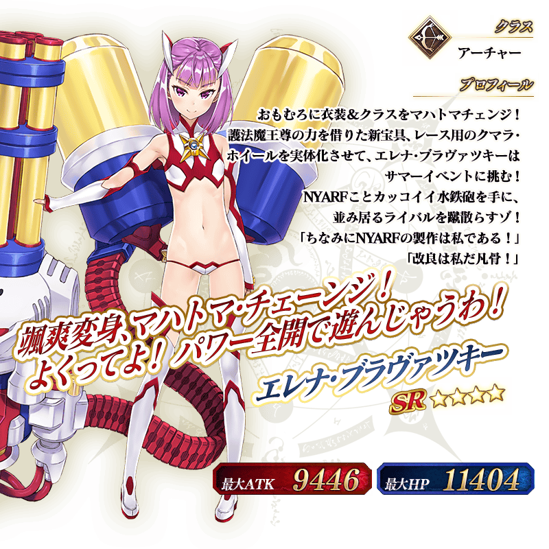 ※上記の「★4(SR)エレナ・ブラヴァツキー(アーチャー)」のイラストは霊基再臨第2段階のものです。