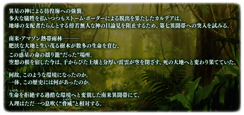 ◆第2部 第7章「Lostbelt No.7 黄金樹海紀行 ナウイ・ミクトラン 惑星を統べるもの」(前編)開幕◆