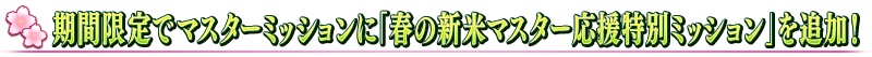 ※「春の新米マスター応援特別ミッション」の追加は、すべてのマスターが対象となります。