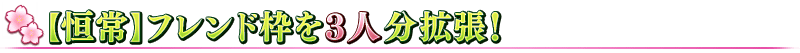 すべてのマスターを対象に、マスターレベルを問わず、「フレンド数」を追加で3枠拡張いたします。