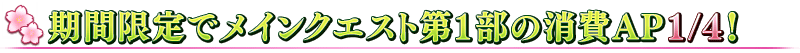 下記の期間中、メインクエスト第1部の消費APが1/4になります!(バトルにおいて撤退した場合でも、同様の消費量になります)