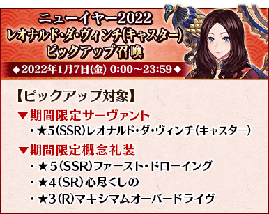 ◆ニューイヤー2022ピックアップ召喚のご注意◆