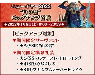 ※上記の「★5(SSR)“山の翁”」のイラストは霊基再臨第2段階のものです。