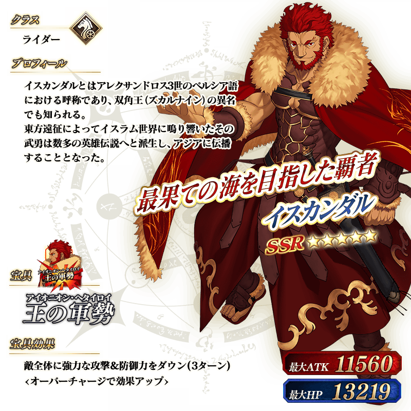 ※上記の「★5(SSR)イスカンダル」のイラストは霊基再臨第2段階のものです。