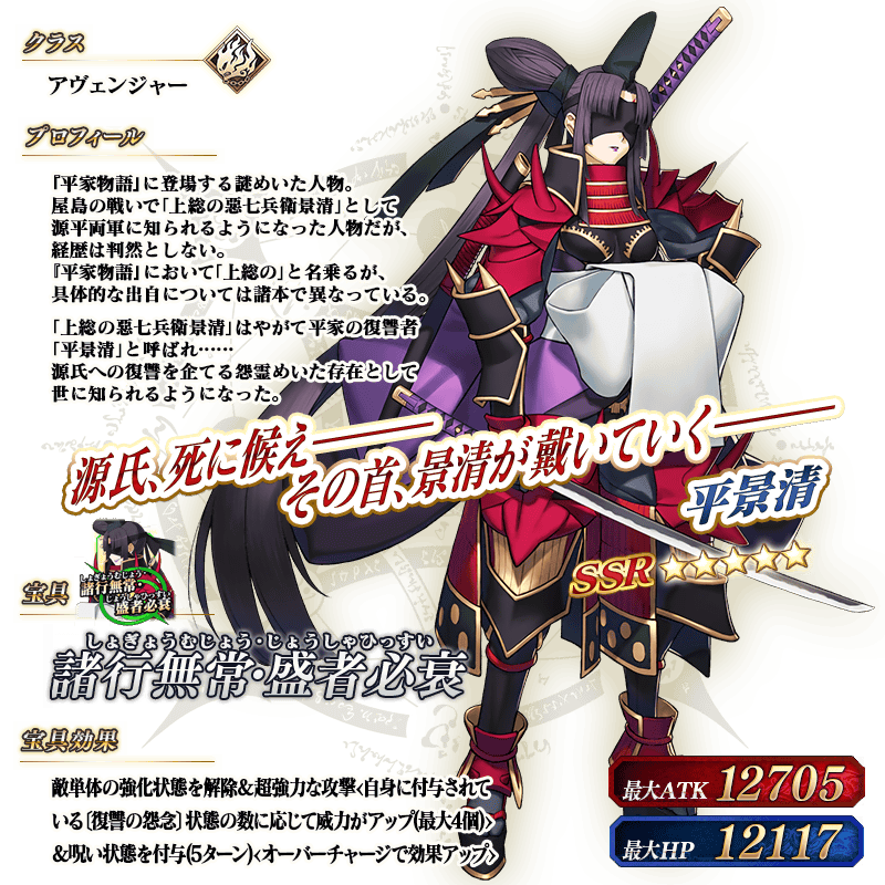 ※上記の「★5(SSR)平景清」のイラストは霊基再臨第2段階のものです。