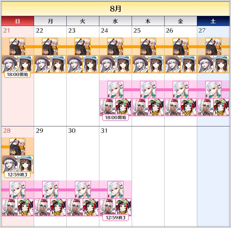 ◆「復刻 水着2021ピックアップ召喚」スケジュール◆
