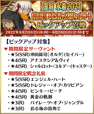 ◆「復刻 水着2021ピックアップ召喚」期間◆